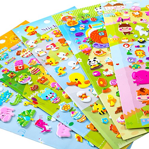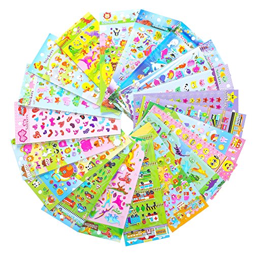 ✿IRREPLACEBLE VALUE, MISCELLANEOUS SHEETS:20 different sheets( 9.5 inches x 4 inches each) with approximately 50 stickers per sheet;Each sheet in an individual sleeve.Keep kids busy; More than 1000 3D puffy stickers in each set which can make for hours of creative fun,baby is more interested!Contact with water will not fade, compared with other puffy stickers!