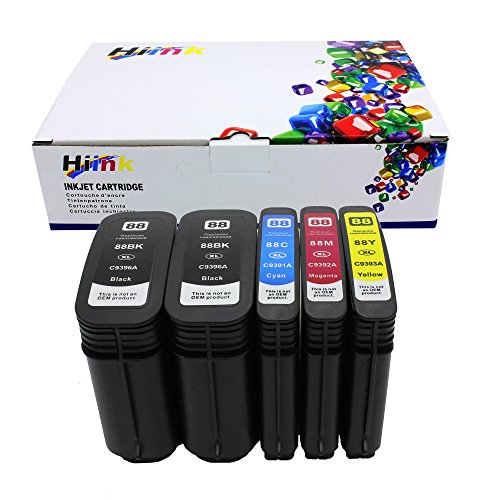 Hi Ink 5 Pack 88XL Remanufactured Replacement Ink Cartridges for Hp C9391an (Hp 88xl) High Yield Cyan Inkjet Cartridge for Use in Hp Officejet Pro K5400, K5400dn, K5400dtn, K5400tn, K550, K550dtn, K550dtwn, K8600, K8600dn, L7480, L7500, L7550, L7555, L758