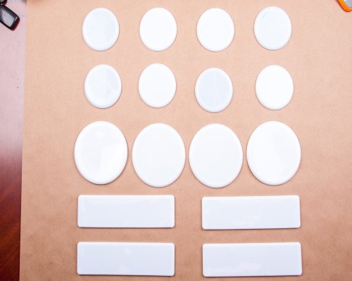 -. Feature : 8 small round sliders (3.5" diameter) / 4 medium round sliders (5" diameter) / 4 rectangular sliders (2.5"x9") / Works on floor or carpet / Great for couches, beds, lazy horses, and entertainment units