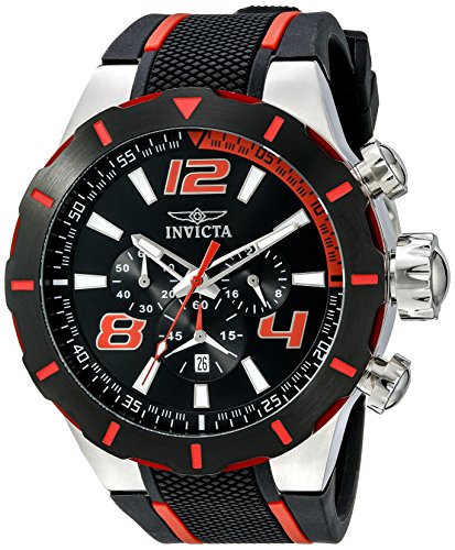 Studio : Invicta Publisher : Invicta Binding : Watch Product Description With a full throttle attitude this S1 Rally timepiece from Invicta creates an edgy and sporty look with a black and red color scheme and chronograph feature against a clean black dial. The flexible polyurethane strap with buckle clasp makes for a secure and comfortable fit for any man. 0