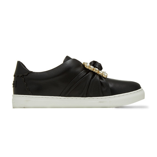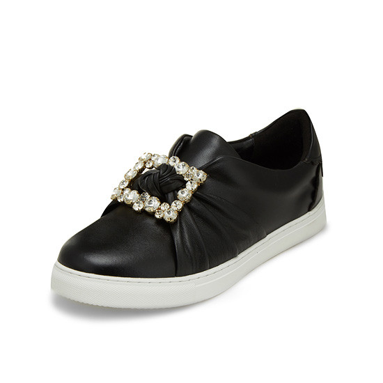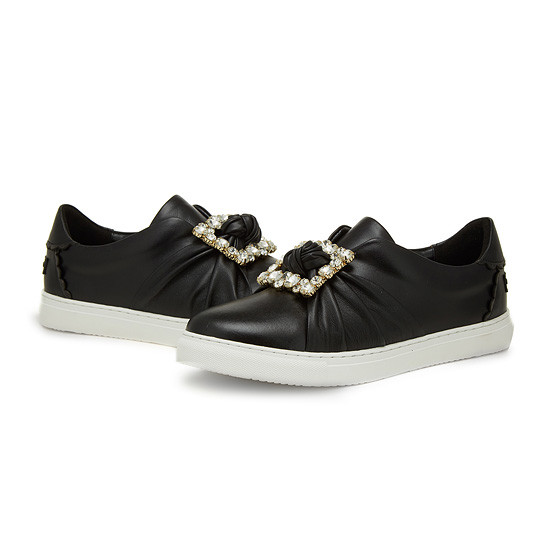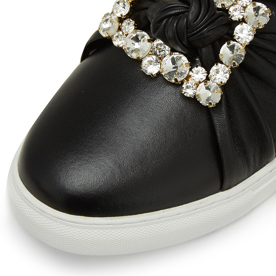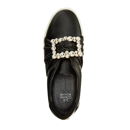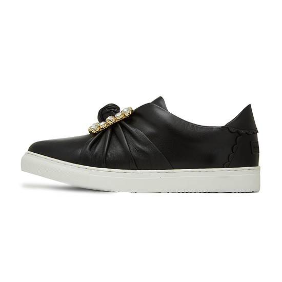 - 커다란 큐빅 장식으로 고급스러운 슬립온.- 가죽을 매듭지어 발등에 포인트를 준 디자인.- 천연 가죽소재를 사용하여 편안한 착화감.- 다양한 코디에 웨어러블하게 연출 가능.* 소재:상피재료: Leather (천연소+양가죽) 창재료: 러버* 색상:블랙* 판매원: 코오롱인더스트리(주)FnC부문* 원산지: 중국| 소재정보: 상피재료: Leather (천연소+양가죽) 창재료: 러버 | 사이즈정보: