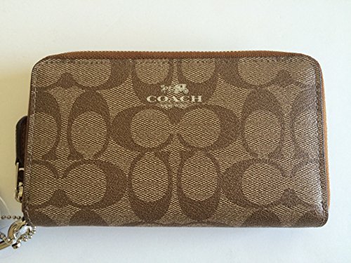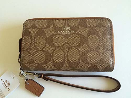 -. Title : Coach SIG PVC Double Zip Phone Wallet Khaki/Saddle 53564