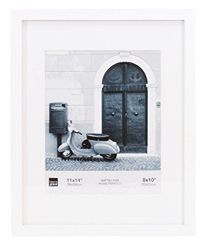 Kiera Grace Contempo Picture Frame Matted for 8 by 10 Inch Photo, 11 by 14 Inch, White
