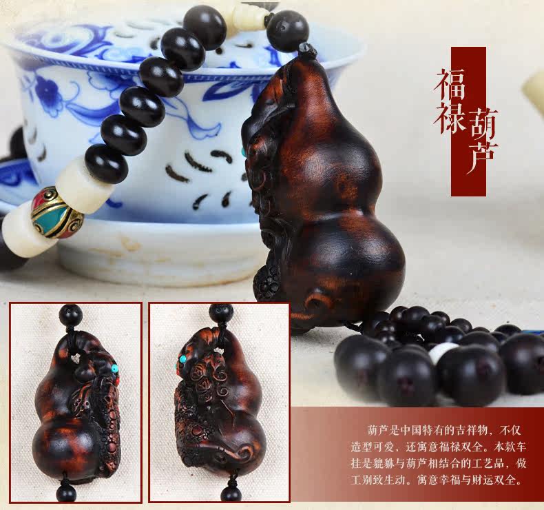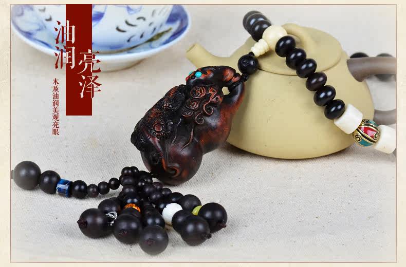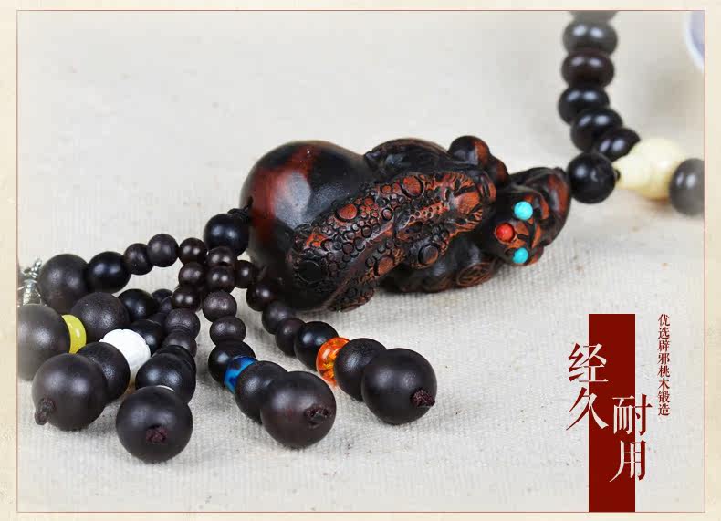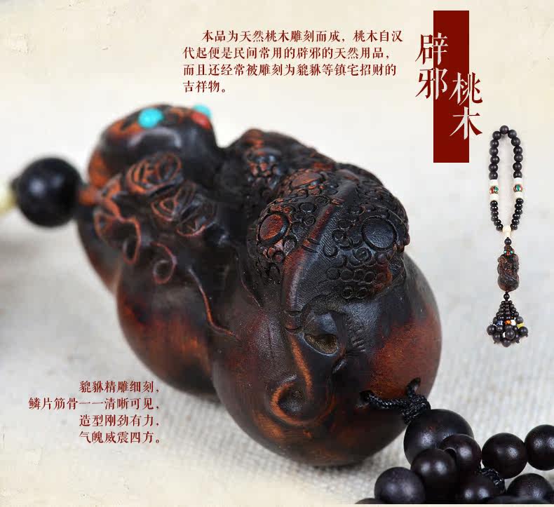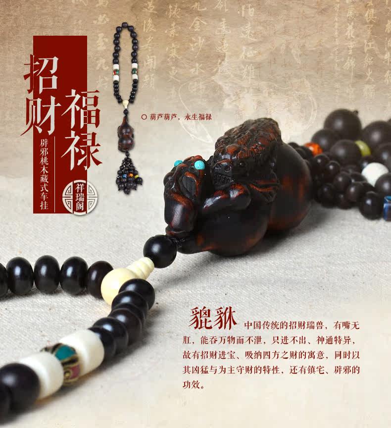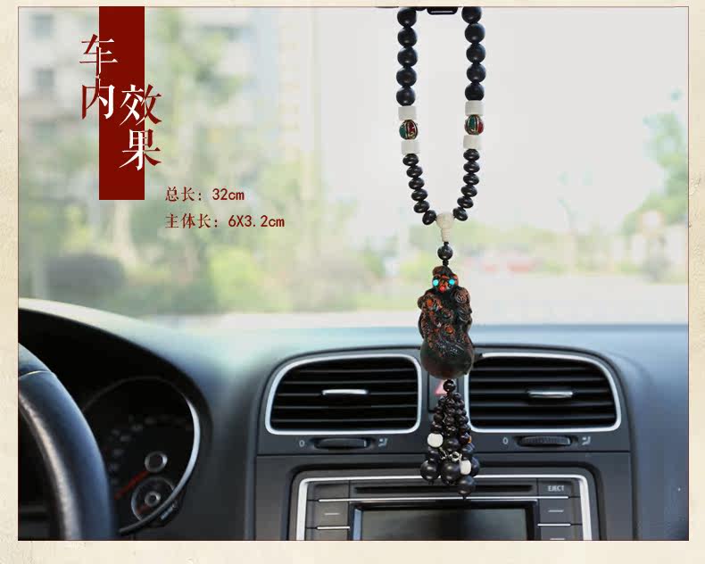 桃木出入平安汽车挂件 招财貔貅挂饰后视镜吊坠避邪转运车内饰品