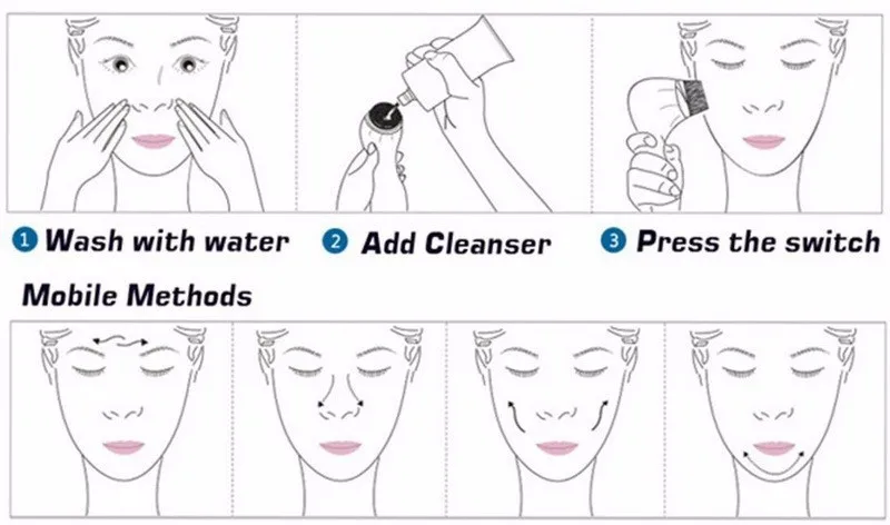 - Simply wet your face and the head before using,then spread skincare cream or cleanser on the head of brush Note: Please do not use the brush on dry skin,it may hurt.