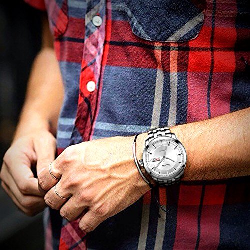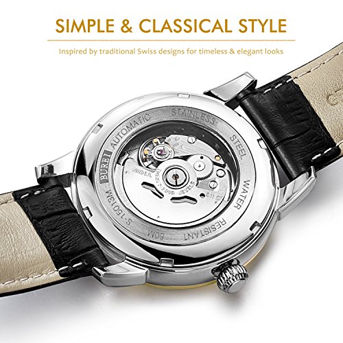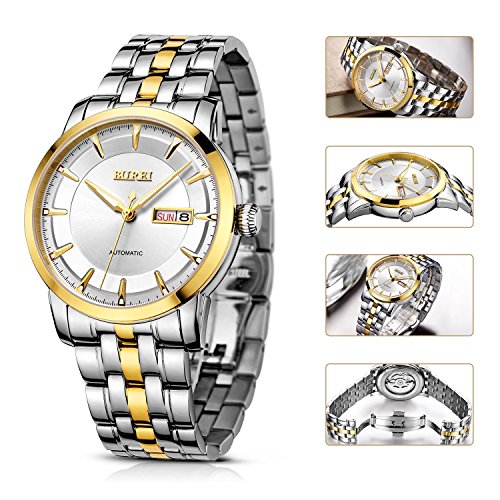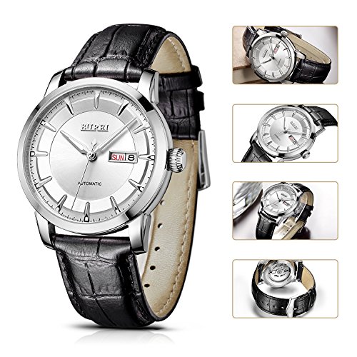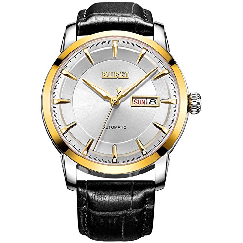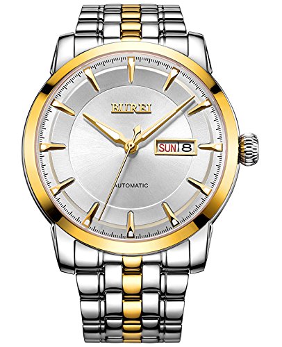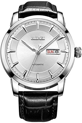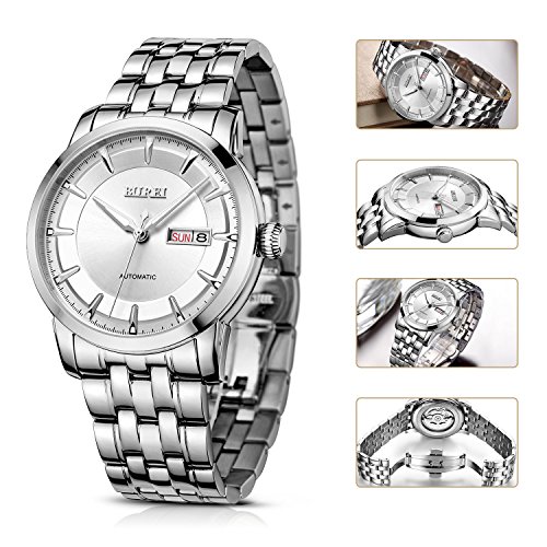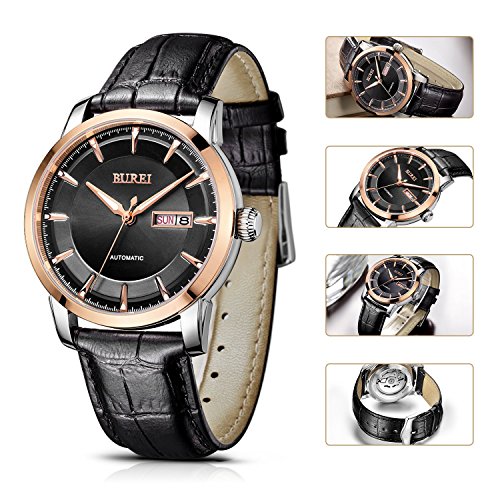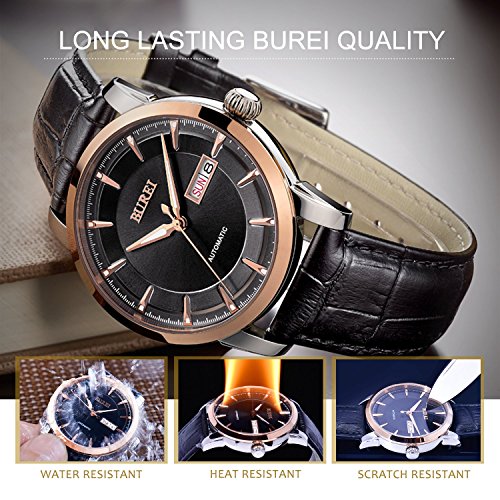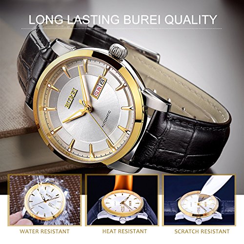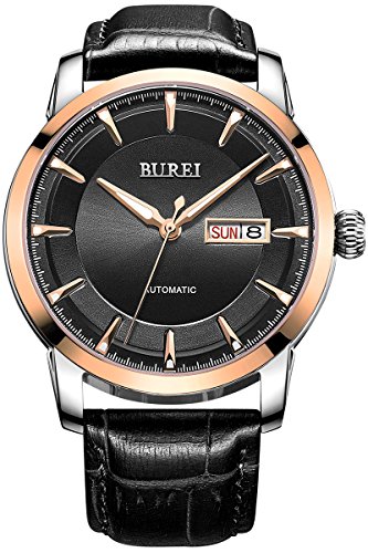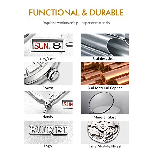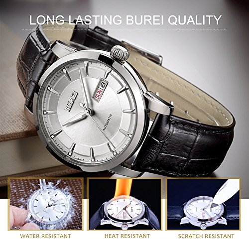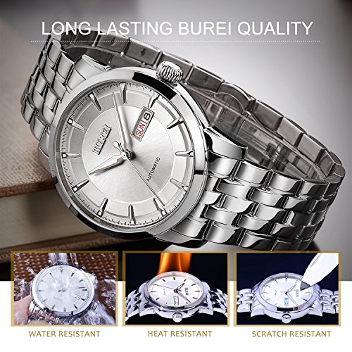 (《바오쇼》)BUREI 손목시계 맨즈 날짜 요일 5기압 방수 스탠다드 남성용 스테인레스 시계 15013-P52AG 기계식 손목시계