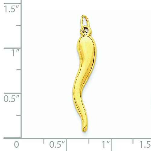 14k Yellow Gold Italian Horn Charm - Measures 29x5mm - .6 Grams in 14k Yellow Gold - Product Attributes: - 3-D - Hollow - Polished - JewelryWeb Style: QTC41012NC - FREE gift-ready jewelry box - This Item Does Not Ship With a Chain