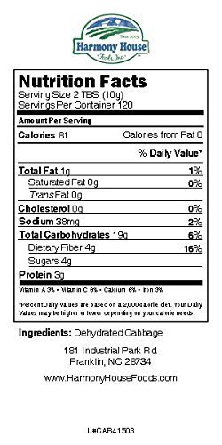 Harmony House Foods Dried Cabbage Flakes (48 ounce Gallon Size Jug) - Set of 2