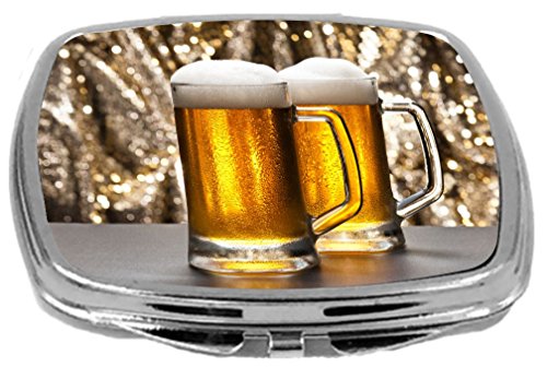 Rikki Knight Compact Mirror, Beer Mug with Glitter Background
