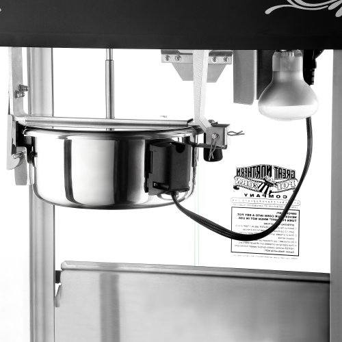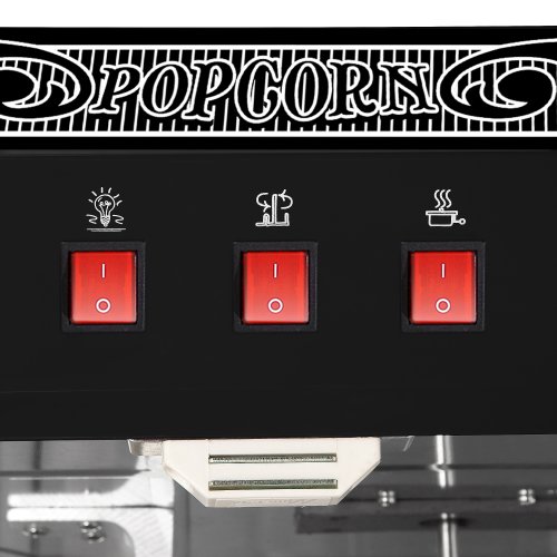 -. Binding : Kitchen -. Brand : Great Northern Popcorn Company -. Color : Black -. EAN : 0610708145943 -. Feature : Deluxe model with 3 control switches instead of 2 switches on lesser machines / Switches include: spot light warmer, stirrer and pot heater; Heated Warming Deck / Built-in warmer light; Popcorn scoop is included; Reject kernel tray Kernel and oil scoop included / Heavy-duty powder coated steel and stainless steel construction; Cleans up with water / Makes roughly 3 gallons of popcorn per batch; Minor assembly is required -. Label : Great Northern Popcorn -. Manufacturer : Great Northern Popcorn -. Model : 6138 Old Time Black Top -. MPN : 6138 Old Time Black Top -. NumberOfItems : 1 -. PackageQuantity : 1 -. PartNumber : 6138 Old Time Black Top -. ProductGroup : Kitchen -. ProductTypeName : KITCHEN -. Publisher : Great Northern Popcorn -. Size : 8-Ounce -. Studio : Great Northern Popcorn -. Title : Great Northern Popcorn Old Time Popcorn Popper Machine Countertop, 8-Ounce, Black -. UPC : 610708145943 -. Warranty : 5 Years Machine / 30 Day on Kettles and light bulbs