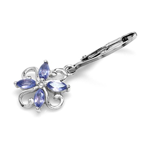 Genuine Tanzanite 925 Sterling Silver Victorian Style Flower Leverback Earrings