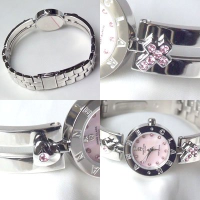 -. Title : [アンクラーク]ANNE CLARK 腕時計 1P 天然 ダイヤモンド ハート&クロス ムービングチャーム シルバー×ピンクシェル AM-1020-17 レディース
