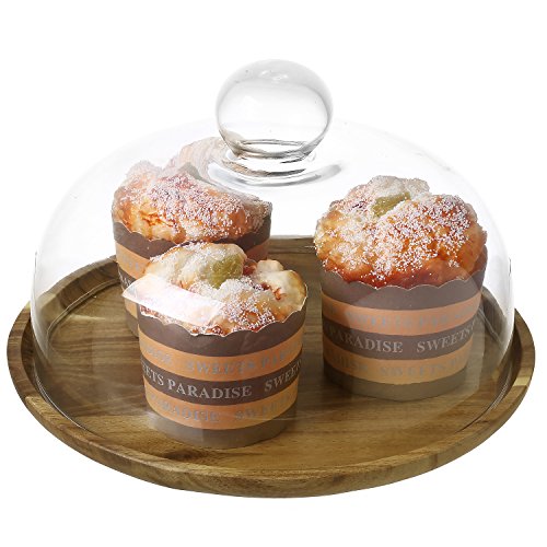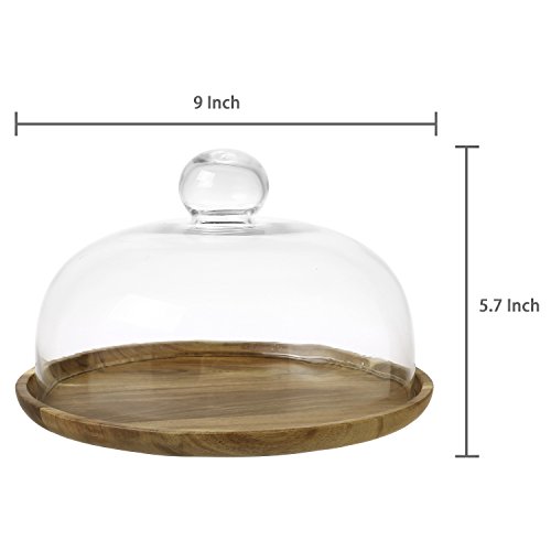 9 Inch Clear Glass Dessert & Cheese Cloche Dome with Acacia Wood Serving Tray
