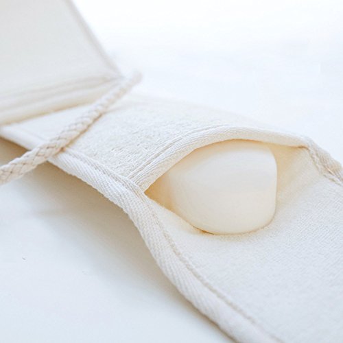 Exfoliating Loofah Back Scrubber with Bar Soap Pocket and Natural Luffa Sponge Body Brushing Bath Shower Pad for Men and Women