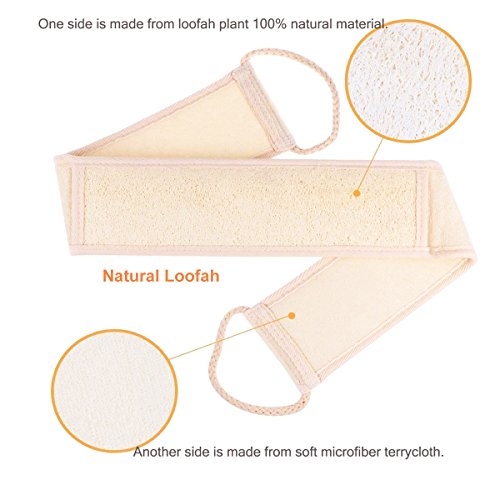 Durable Material - The loofah pad and luffah back scrubber are made of Natural Organic Loofah material and terry cloth, great for bathing and exfoliating.