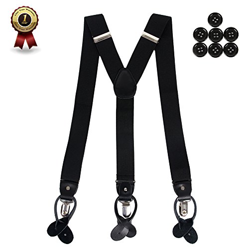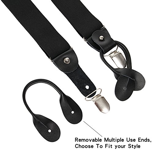 Design of Suspenders Ends: This Type of Suspenders Have Two Removable Ends Which Include Heavy Duty Clips and Real Leather Button End, You can Choose Anyone of them to Fit Your Style, Basically, It means You are Buying one for Two Styles.