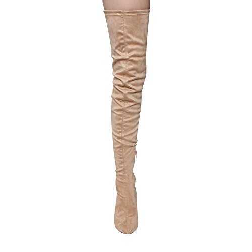 LILIANA GE32 Women's Pointy Toe Drawstring Thigh High Stiletto Boots