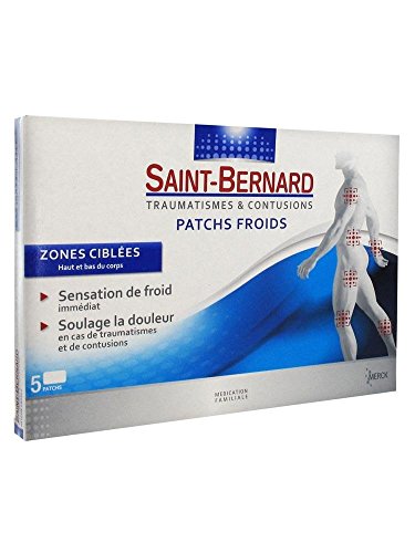 -. Feature : Saint-Bernard Traumatismes et Contusions 5 Cold Patchs are ideal to reduce and alleviate muscle and joints pains coming from injuries and bruises. They are suitable for targeted areas (upper and lower areas of the body). / Easy to use, the patch has a refreshing action (caused by the slow evaporation of water contained in the gel), absorbs the heat and reduces the temperature of the concerned area, bringing a sensation of cold for an immediate alleviation. Moreover, the cold effect brings a light vasoconstriction (a reduction in the caliber of the blood vessels), and rapidly reduces the inflammation of the treated area.
