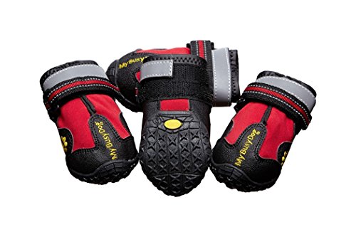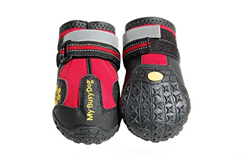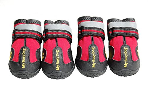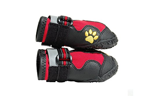 Waterproof Dog Shoes with Reflective Velcro and Rugged Anti-Slip Sole (Size 4, Red)
