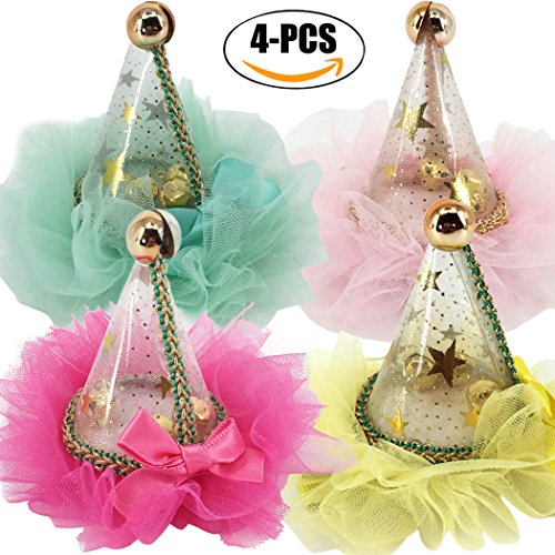 -. Title : Dog Headwear, Legendog 4Pcs Dog Party Hat Mesh Bell Cap Shape Cat Headwears Pet Hair Accessories for Festival