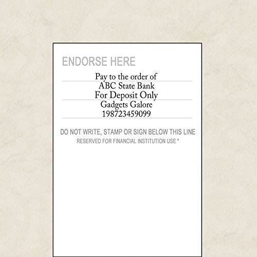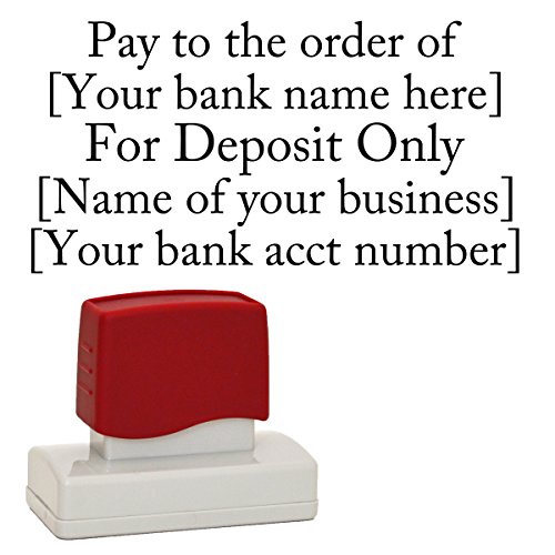 -. Feature : Simply customize and order this FOR DEPOSIT ONLY stamp. Stamp The Envelope creates your custom stamp for you, in-house, and that means not only do we pay attention to detail but we get your stamp in the mail fast. Should you have questions, please message us. / Superior high quality, eco-friendly self inking custom deposit stamp with premium oil-based ink that gives you a crisp, clean, even stamp every time. Black ink only. / Self inking and good for lots of impressions, so no need for an ink pad that dries out or you can't find. This stamp can be easily re-filled. / ImP.R.Int size is up to 2 1/2" wide x 1 5/8 " tall (shorter if your info is shorter) - perfect for the back of a standard size check. / Your personalized deposit stamp will save you time; no more writing on the back of every check you need to deposit. You personalized the deposit stamp with YOUR information, up to 5 lines.