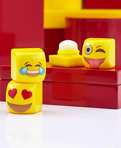 The Set of 3 Kaomojibalms will keep your lips soft and moisturized. Each flavored and scented lip balm features a popular emoticon character. Just twist the top face off and apply the other end to your lips. The cube-shaped containers are small enough to carry around in your purse or wristlet. The heart eyes and winking eye with tongue are French vanilla-flavored. The tears of joy is cherry pomegranate. 1-1/4" cu., each. Plastic. Your favorite emoticons are now lip balms You get all 3 Details: 1-1/4" cu., each PlasticFeature