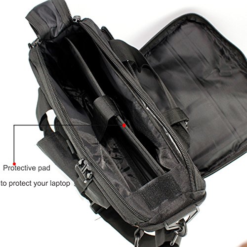 -. Feature : This bag can accommodate 14-inch-computer and Front have four packets, you can put a mouse, power supply, cellphone and your data lines. / Padded laptop sleeve, the internal anti-collision isolation pad is a Velcro design,you can install and remove as needed. / Water resistant 600D Nylon, Water repellent lining effectively protect data. / Both the comfort,lage handle attachment and shoulder strap,feel is more flexible, perfect for hiking, school, travel and other outdooor activities. / MOLLE system:bags on both sides with expainded capabilties,may be outside the hanging objects such as kettles pouch etc.