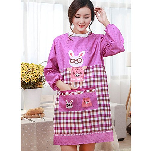 CHUANGLI Long Sleeves Kitchen Apron Waterproof Apron Anti-Dress Cook Aprons with Pockets Purple