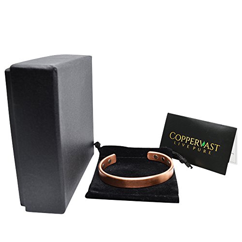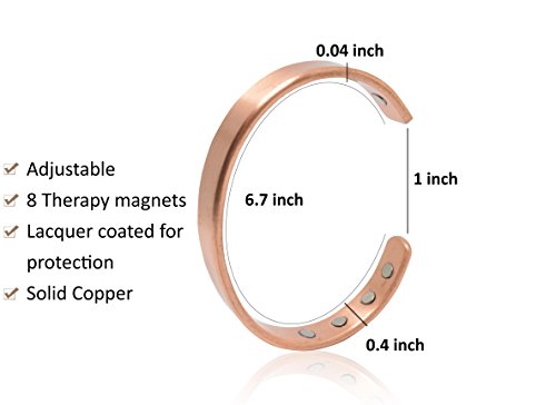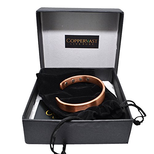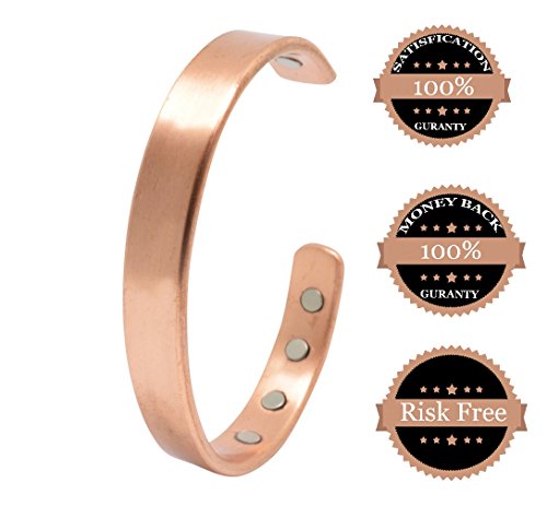 Copper bracelets for arthritis a healing metal combined with magnets produce a therapeutic effect: Copper is known to be an essential element in maintaining a healthy body. It acts as a brain stimulant and boosts immunity and energy. Helps in reducing symptoms of arthritis, It is believed that copper and magnets bracelets improve blood flow providing relief from arthritis, migraines, carpel tunnel and assists in the delivery of oxygen and nutrients to the body's tissues. Directions to clean: Copper is known to change to a brown or black color when it reacts with oxygen; this can be easily avoided by cleaning your copper jewelry regularly in one of the two following ways: Using Lemon and Salt: Prepare a mixture of lemon juice and salt. Rub the mixture over the tarnished areas of the bracelet with a soft cloth until clear. Rinse with warm water and polish. Using Salt, Vinegar, and flour: Prepare a paste by adding one tablespoon of salt to one cup white vinegar and flour. Rub the paste over the tarnished areas of the bracelet with a soft cloth until it is clear. Leave for 15 minutes and rinse with warm water.Disclaimer !! This product is not intended to diagnose, treat, cure or prevent disease. Do not use if you have Pacemaker, Insulin pump, defibrillator or any other implanted medical device. These bracelets are not suitable for pregnant women. 100% MONEY BACK GUARANTEE NO questions asked makes this your best bet for a no-risk purchase.HURRY AND BUY YOURS NOW before our supplies run low.Scroll up click "Add To Cart Now"! 0 |