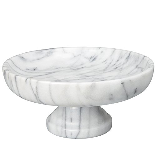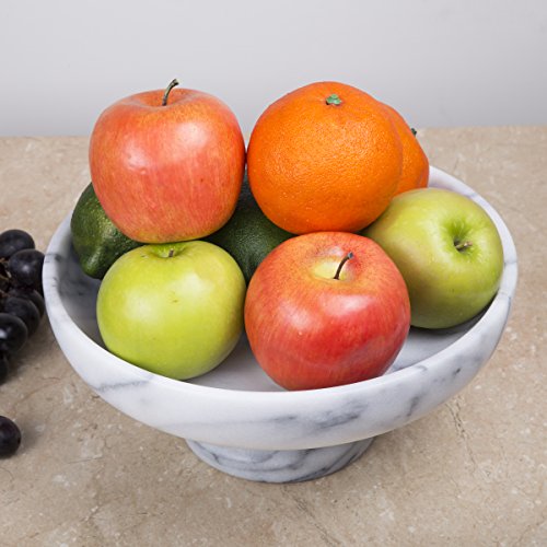 Creative Home White Marble Fruit Bowl on Pedestal has a substantial bowl that rests on a traditional pedestal for a grand presentation of fruits or decorative objects. Great color to match with your dining and kitchen table. Sophisticated enough for everyday life in the kitchen, perfect size of 10" x 10" Cake Plate on a Pedestal. The classic footed design holds an assortment of fresh fruit for display or serving. Crafted of genuine natural marble, color may vary due to the nature of the stone.Feature