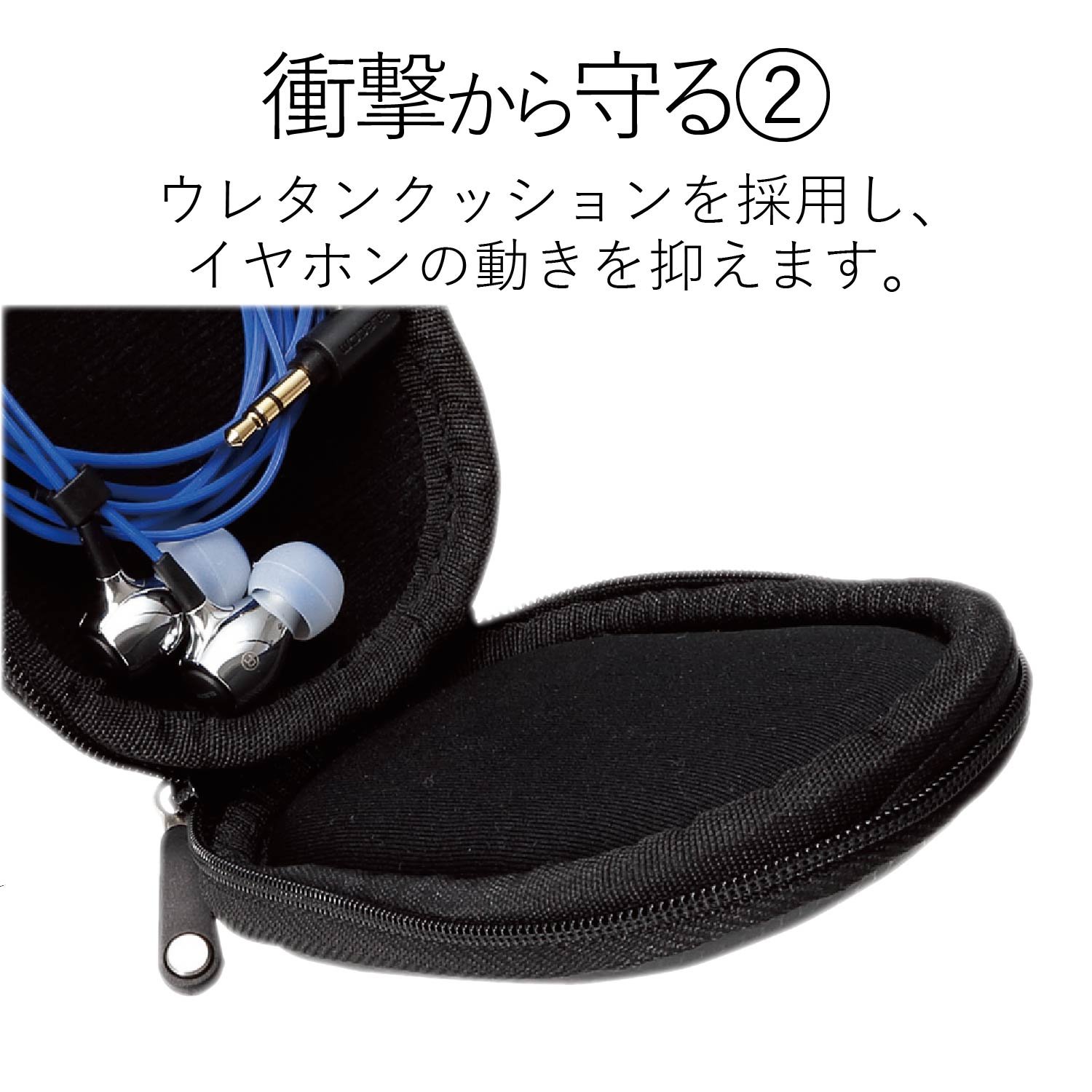 ■ Inside the case, use a urethane cushion to protect the movement of earphones and cords.