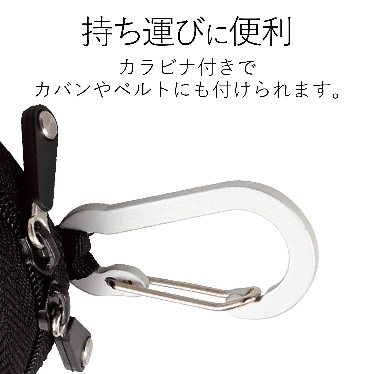 ■ Carabiners that can be attached to bags and belt loops are included.