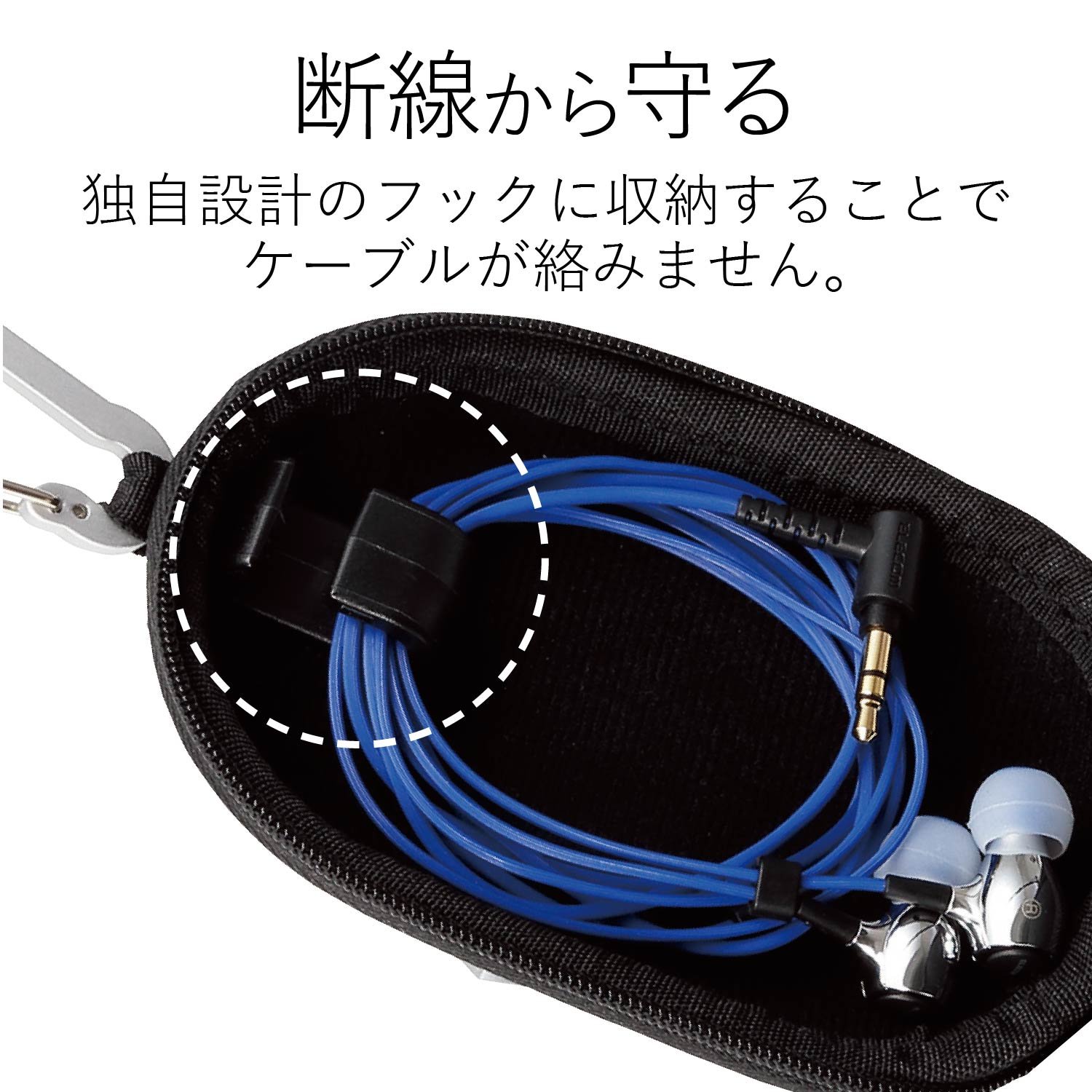 ■ Semi-hard type earphone case that suppresses entanglement of the code and protects the earphone from the external impact.