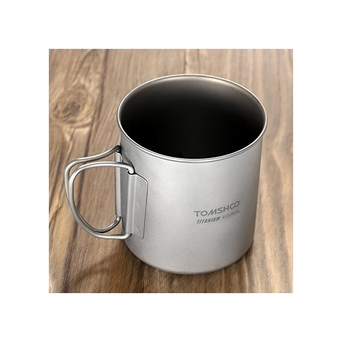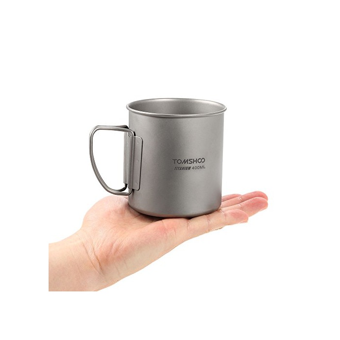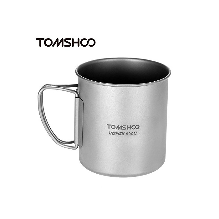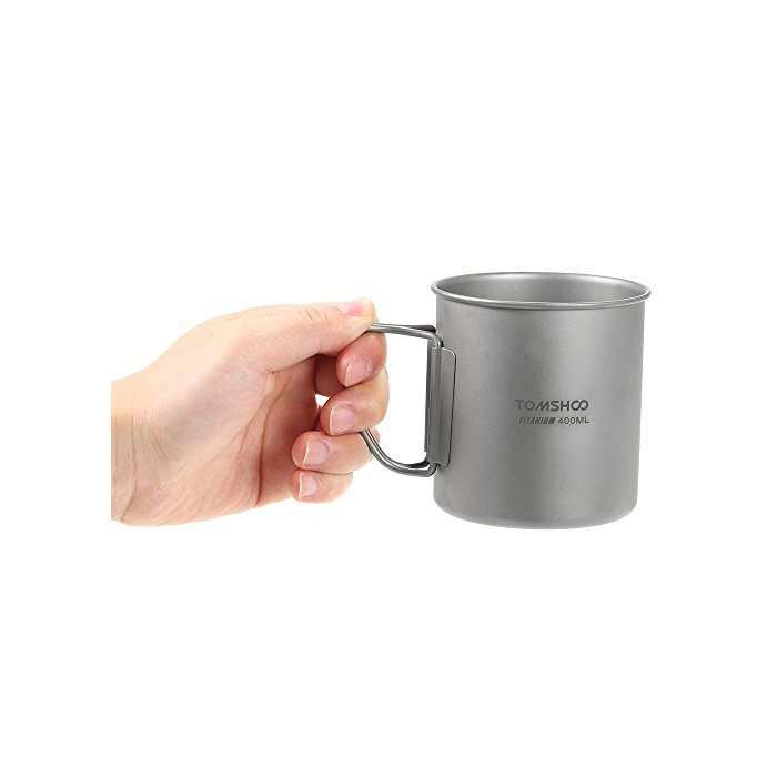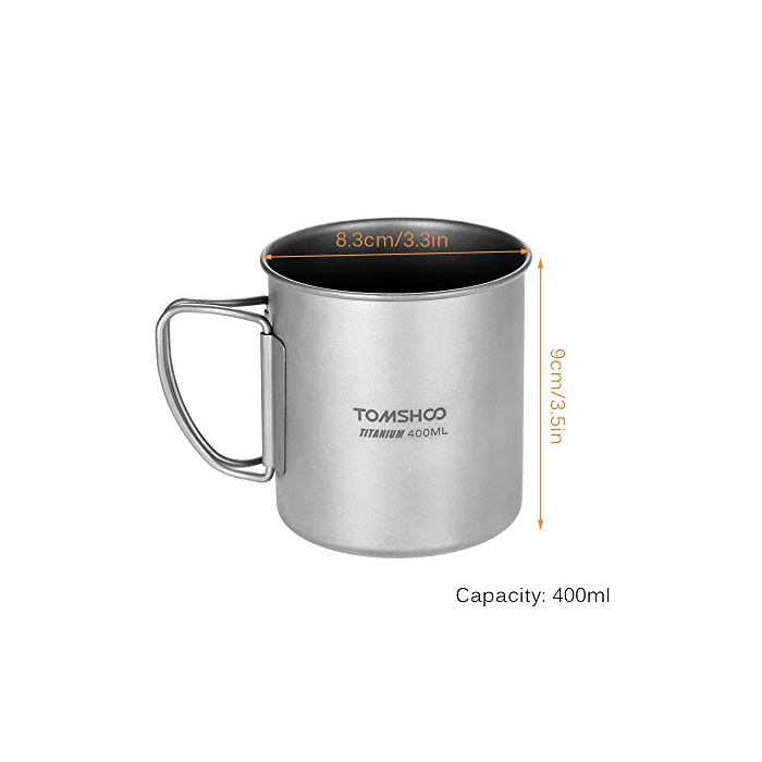 TOMSHOO 400ml 티타늄(티탄) 컵 옥외 아웃도어 휴대용 캠프 피크닉 수 컵 머그컵 접는식 핸들