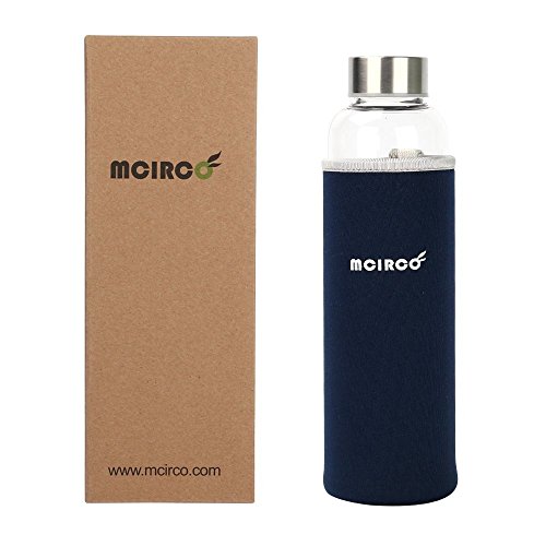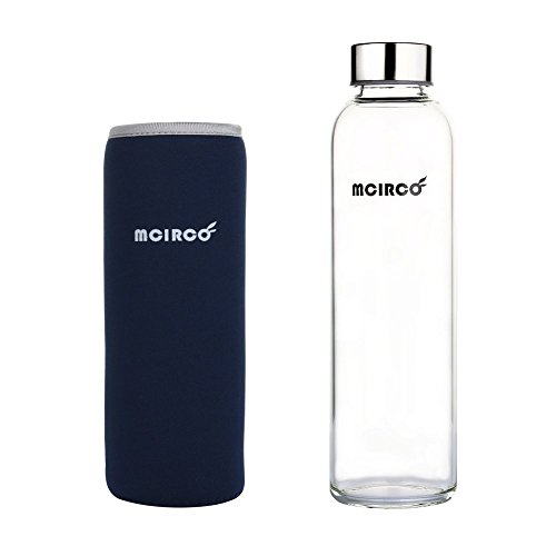 Glass Water Bottle, MCIRCO 18-ounce Outdoor Portable Borosilicate Glass Waterbottle with Nylon Water Bottle Sleeve and Bottle Brushes (Blue)