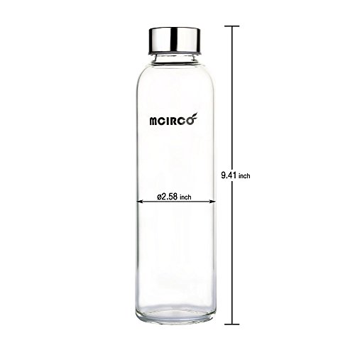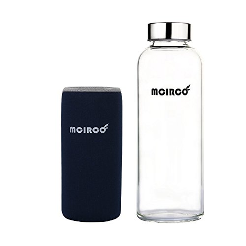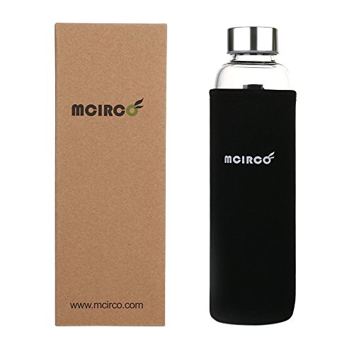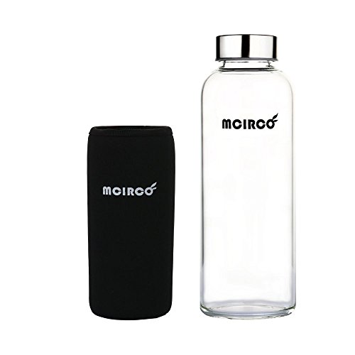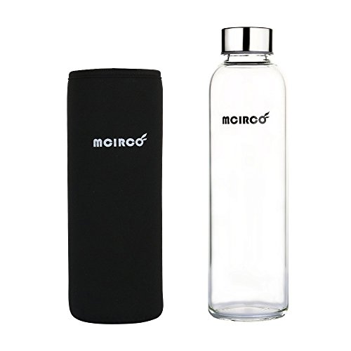 Glass Water Bottle, MCIRCO 18-ounce Outdoor Portable Borosilicate Glass Waterbottle with Nylon Water Bottle Sleeve and Bottle Brushes (Black)