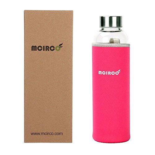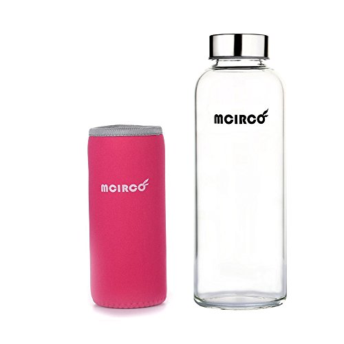 Glass Water Bottle, MCIRCO 18-ounce Outdoor Portable Borosilicate Glass Waterbottle with Nylon Water Bottle Sleeve and Two Bottle Brushes (Pink)