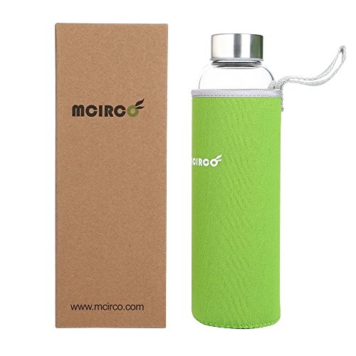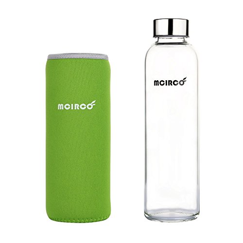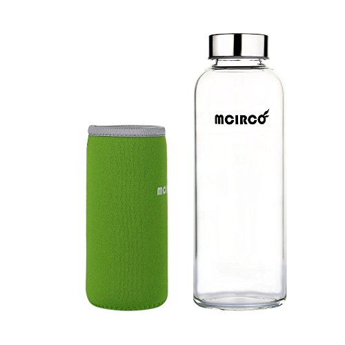 Glass Water Bottle, MCIRCO 18-ounce Outdoor Portable Borosilicate Glass Waterbottle with Nylon Water Bottle Sleeve and Bottle Brushes (Green)