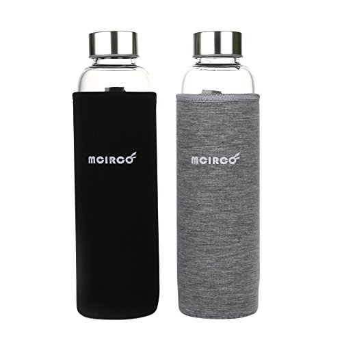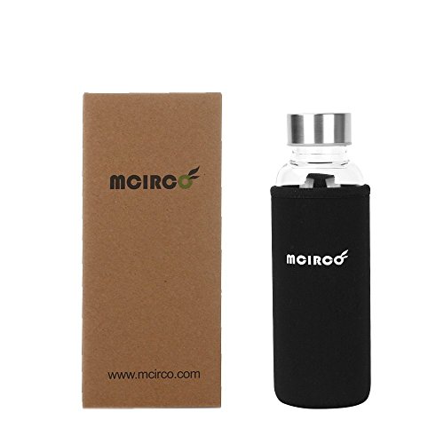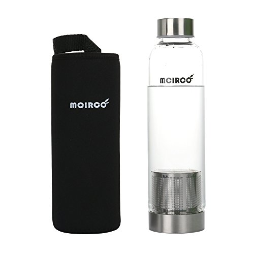 Glass Water Bottle, MCIRCO 18-ounce Outdoor Glass Bottle Portable Borosilicate Glass Waterbottle with Tea Strainer, Nylon Bottle Sleeve and Bottle Brushes (Black)