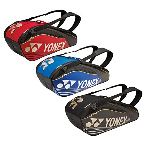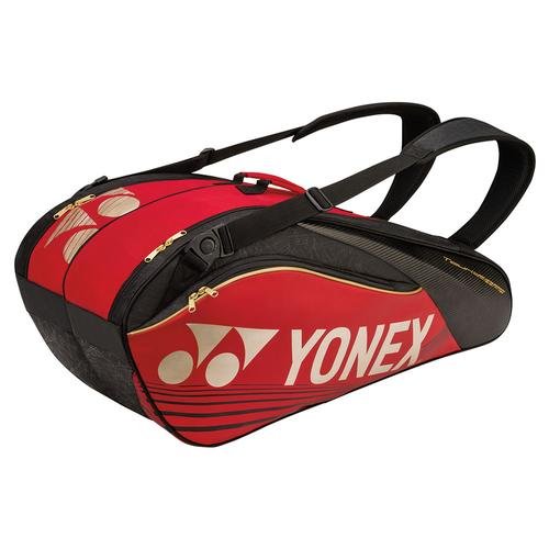 Studio : Yonex Publisher : Yonex Binding : Misc. Product Description The Yonex Pro Series 6 Pack Bag is a great heavy duty option for the player looking to carry up to 6 racquets to the courts. Two large main compartments are ideal for carrying all your racquets or any extra gear. A zippered accessory pocket on the side helps keep your personal items organized and easy to get to. A separate pocket on the bottom of the bag that expands into one of the main compartments is perfect for carrying your tennis shoes or dirty clothes. The heavy duty design is re-enforced by a new semi-molded outer shell that helps the bag keep its shape and hold up to the rigors of travel. 0