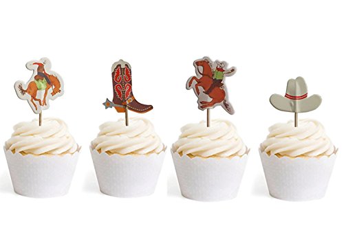Cowboy Cupcake Toppers Cowgirl Themed Party Decorative 24pcs By GOCROWN