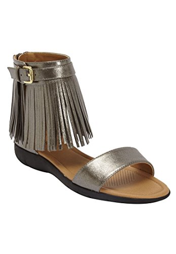 Studio : Comfortview Publisher : Comfortview Binding : Apparel Product Description Step into comfortable style with these pearlized leather-like sandals! pearlized leather-like upper back zip entry memory foam insole for ultimate comfort flexible, skid-resistant outsole 1¼" heel Leather-like sandals available in full and half sizes 7-11, 12 M; 7-11, 12 W; 7-11, 12 WW 0