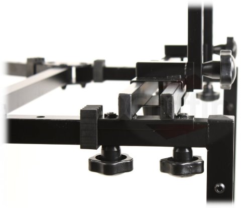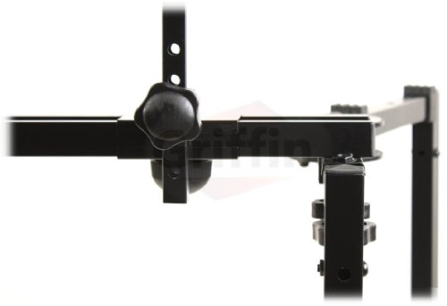 -. Feature : 1 year Replacement Warranty. 30 Day Money Back. See seller terms for details. / Extremely versatile | Red, rubber feet protecting equipment while on the tier and preventing unwanted movement of your items | Folding stand | Removable upper tier / Two-tiered. Flexible, adjusts to many configurations / All steel construction | Double-spine gears with radial grooves | Heavy duty. Accommodates large-format keyboard, mixers, racks, DJ coffins and speakers / Specs: Height adjustment of bottom tier only: 24 inches to 33.5 inches | Height adjustment of upper tier only 8.5 inches to 13.5 inches | Width adjustment of upper tier: up to 25.5 inches | Upper tier support arms length: 16.5 inches | Width adjustment of bottom tier: 29" to 45" inches | Bottom tier adjustable depth: 17 inches to 27 inches | Construction: welded and bolted | Square steel tubing perimeter: 30 mm by 30 mm | Top tier weight capacity: 60 pounds| Total weight capacity: 250 pounds