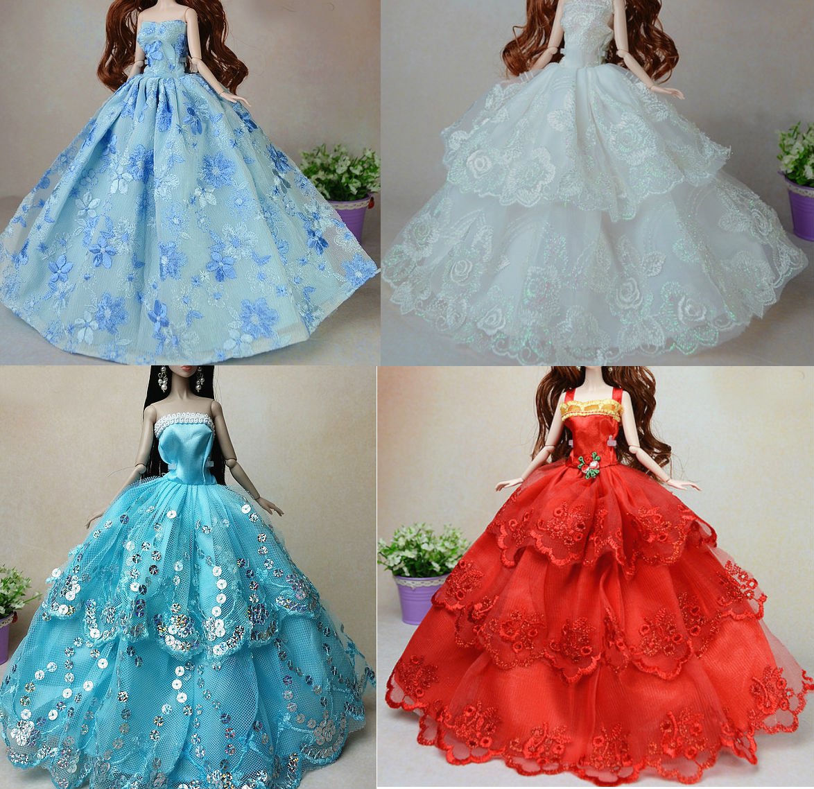 Embroidered lace design 1/6 Doll doll dress couture set dress-up clothes collector (6 pieces)