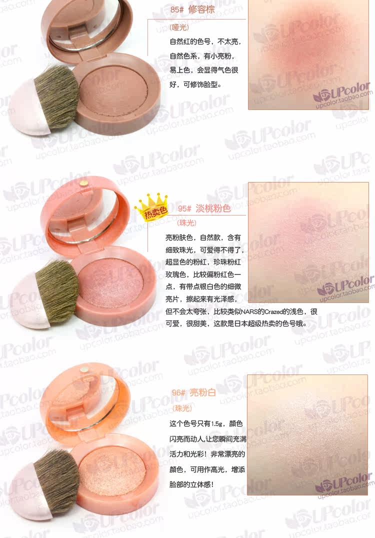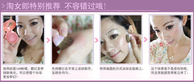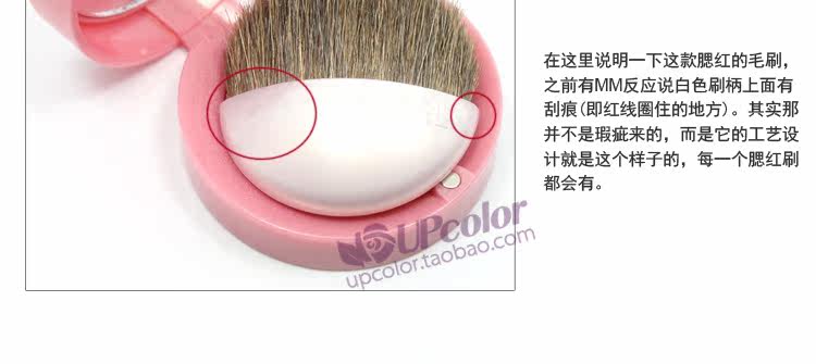 全新的粉刷会吃进大量的腮红有不太上色的现象,建议全新的粉刷先多刷腮红,让粉刷吃饱粉,再来上妆,就比较好上色了;当不小心上多了腮红的时候,可以用散粉盖上去,这样既可减淡腮红颜色,又可以打造白里透红的好气