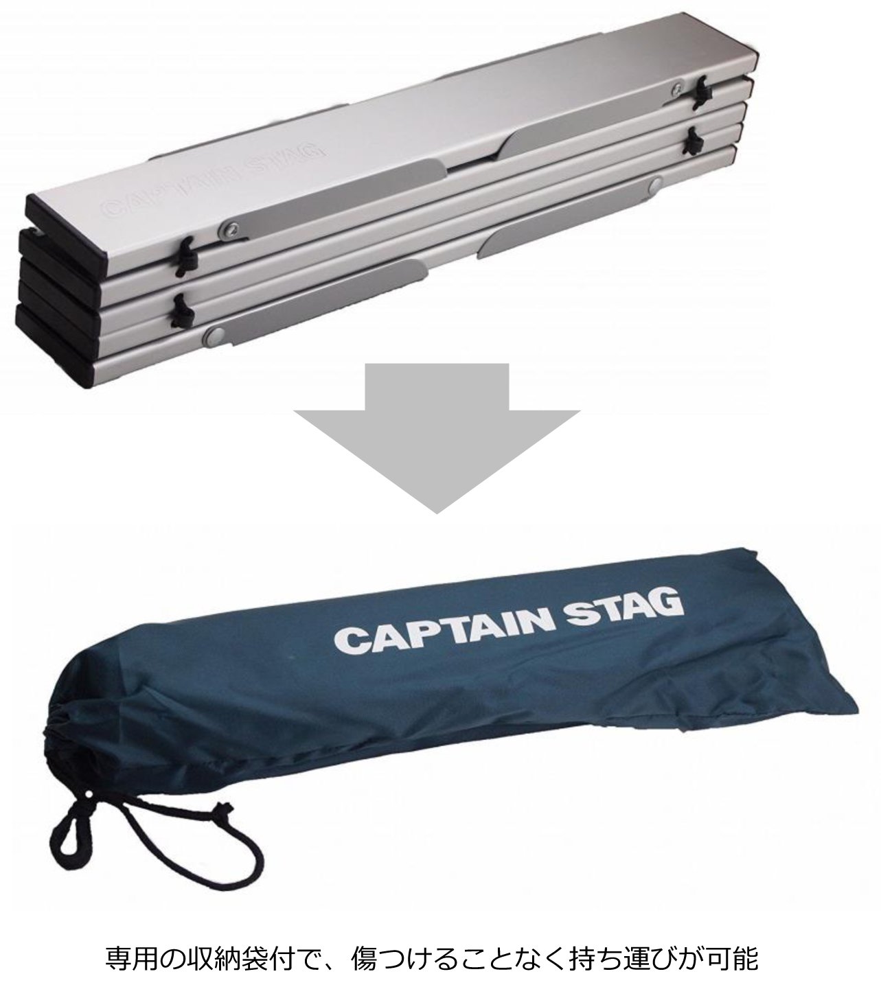 材質: 甲板/アルミニウム(表面加工/アルマイト)、脚部/鉄(エポキシ樹脂塗装)