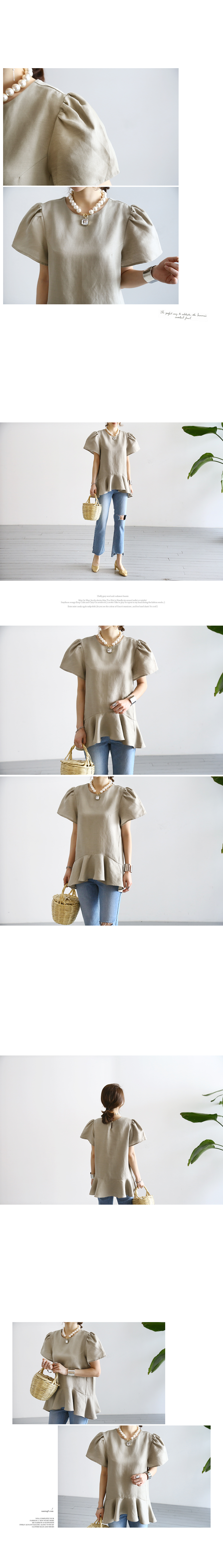 봉긋한 퍼프 소매와 밑단 러플 디테일이 러블리하답니다.