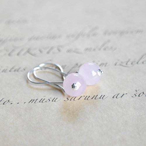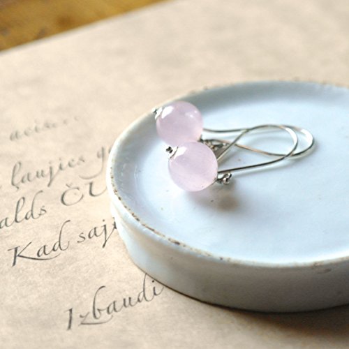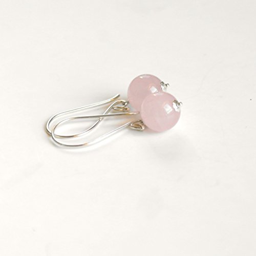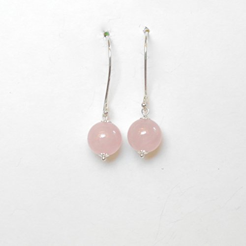 -. Title : 1.9'' sterling silver earrings ROSA // pink quartz round beads