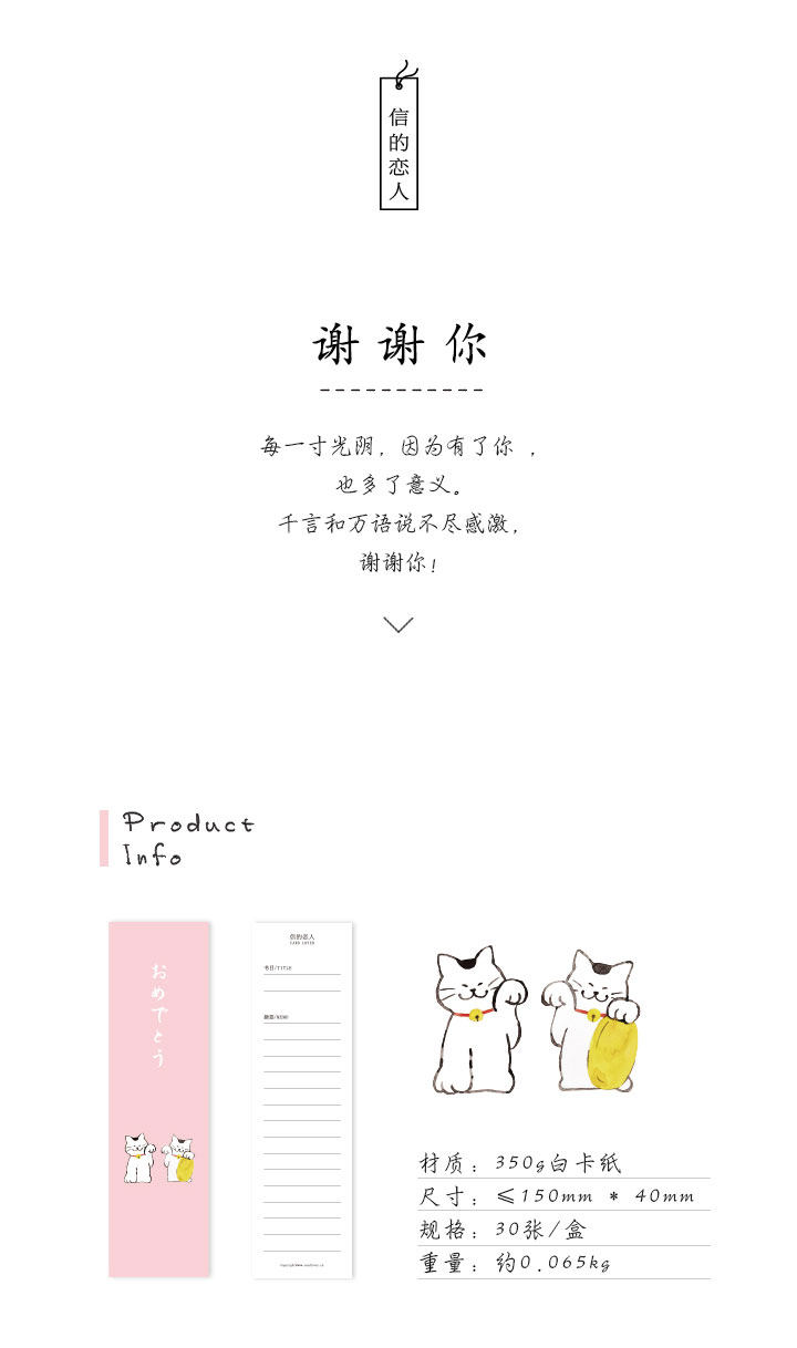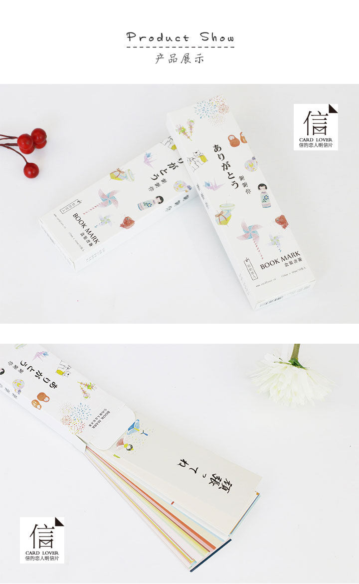 纸质谢谢你书签 日系简约创意手绘书签 留言小卡片 盒装
