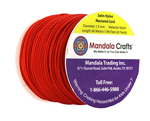 Mandala Crafts 1.5mm Satin Nylon Chinese Knot Rattail Macramé Beading Knotting Cord (1.5mm,60M or 65 Yards, Red)